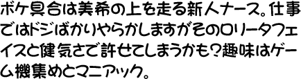 「特技は買い食いで、主人公のキャラの財布をスリとっては、お菓子食べてるんだけどね。ばれるたびに頭としっぽを掴まれて、ビミョーンって伸ばされちゃったりするんだよ」