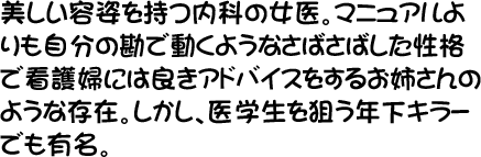 「とりあえず、放置プレイね…あと精神科もオーダーしといて…」 |